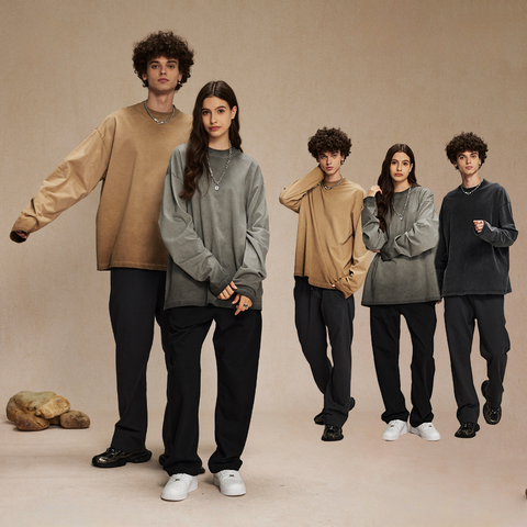تي شيرت رجالي طويل الأكمام ممتد 25 خريف جديد على طراز الشارع في الولايات المتحدة الأمريكية بقاعدة محبوكة ثقيلة الوزن فضفاضة جديدة صلبة