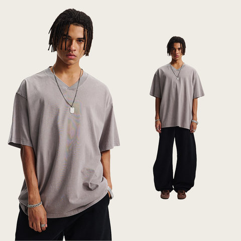 Camiseta de manga corta con cuello en V de algodón puro estilo Vintage Retro de moda para hombres pareja de moda Tie-Dye Wash pantalla de seda personalizada