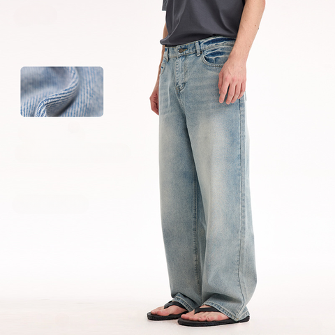 Autunno pantaloni dritti retrò alla moda 3D baffi di gatto consumati Jeans Vintage lavati pantaloni lunghi larghi in tessuto Denim